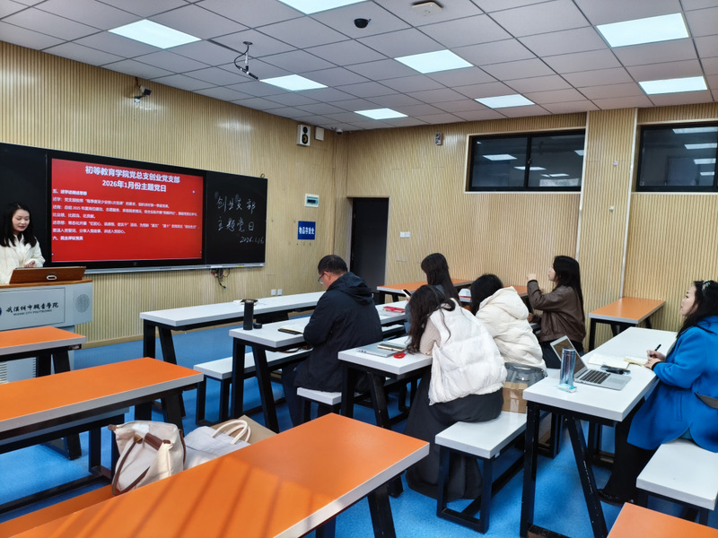 2026年1月16日,初等教育学院创业党支部在北校区教学楼A101召开主题党日活动,会议由组织委员张静文同志主持。
